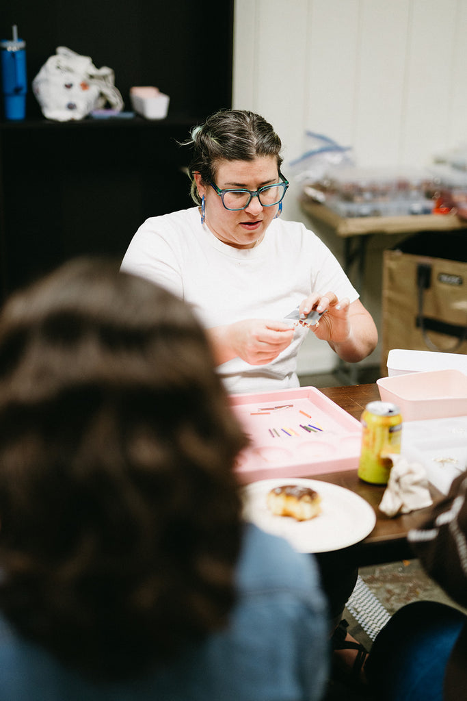 With my guidance, you can make whatever you want during this 2-hour gathering! Most folks make at least one bag charm and one pair of earrings, but this varies based on how complex you choose to make your goodies. You can even take some charms home to play with in the end!